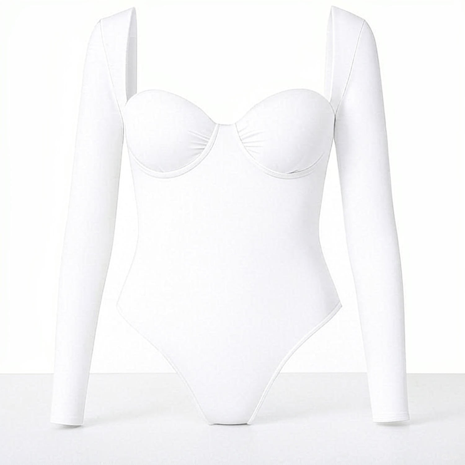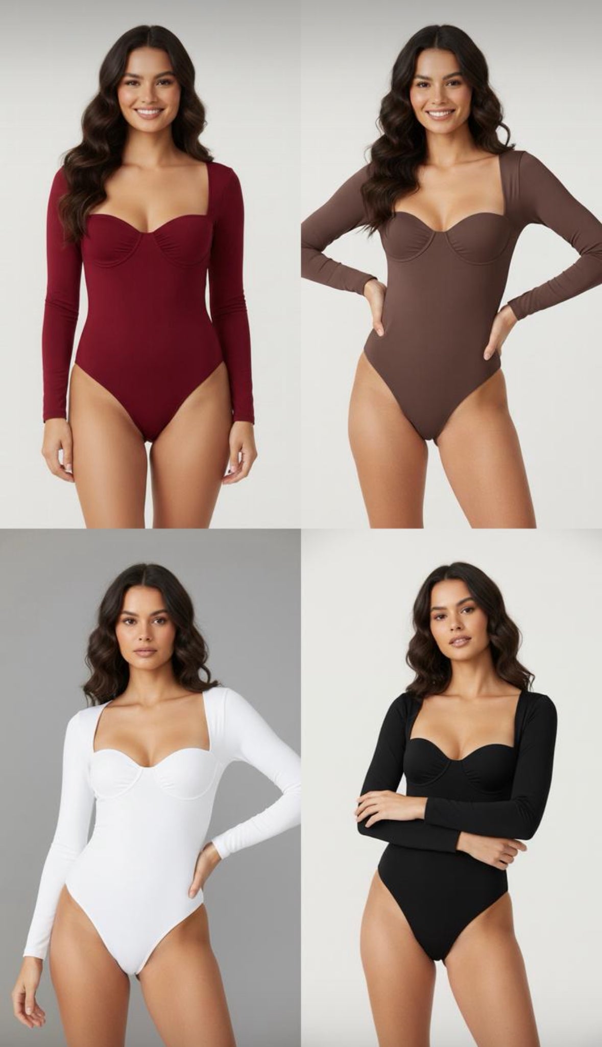 Body manga larga, con copas prehormadas y panty brasilero con 3 posibilidad de ajuste a 3 medidas.