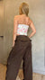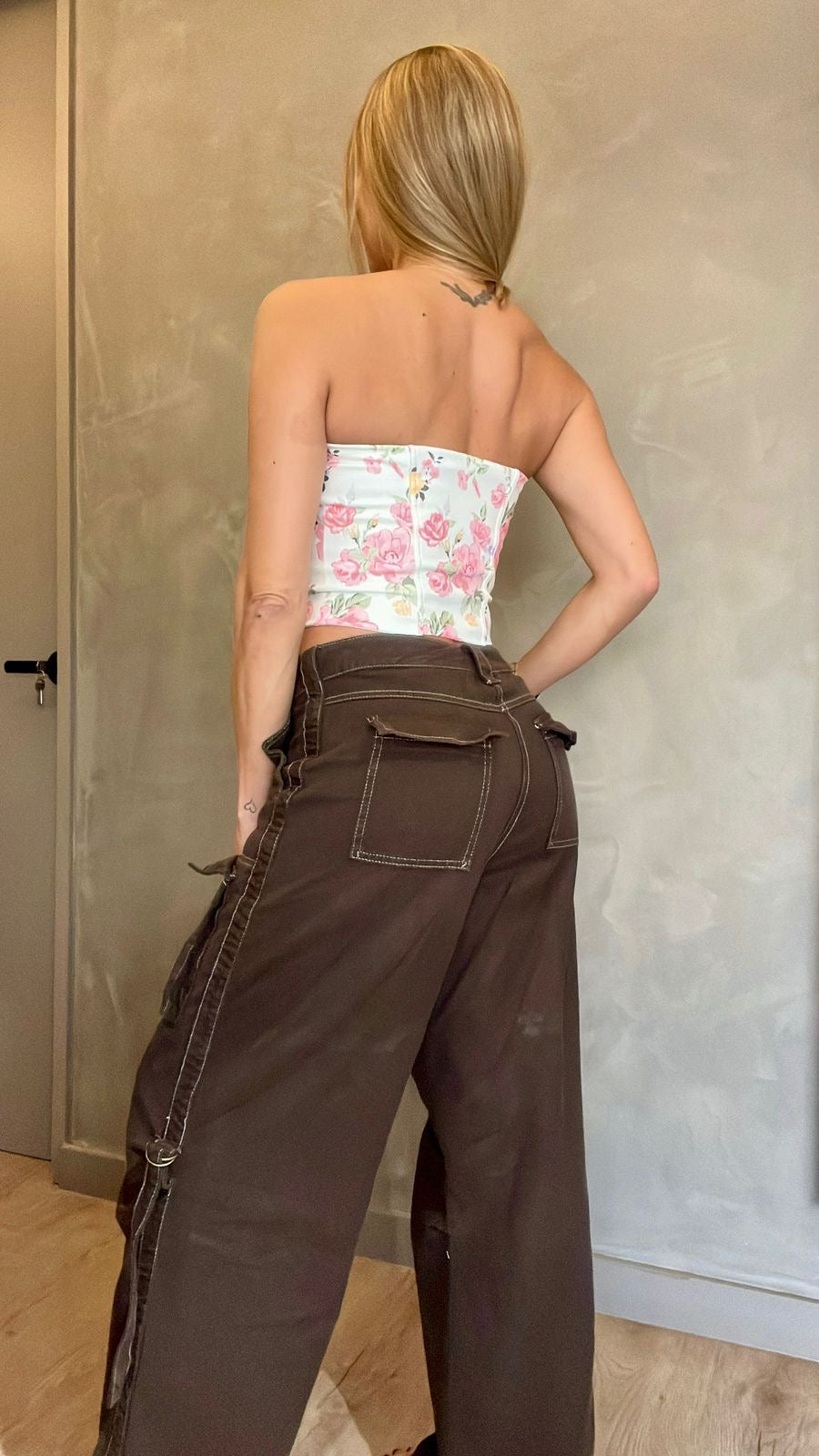 Top tipo corpiño, en flores, con varillas flexibles y broches delanteros.