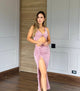 vestido corto, con piedras en la parte delantera, cuello redondo y compuesto por poliéster tejido