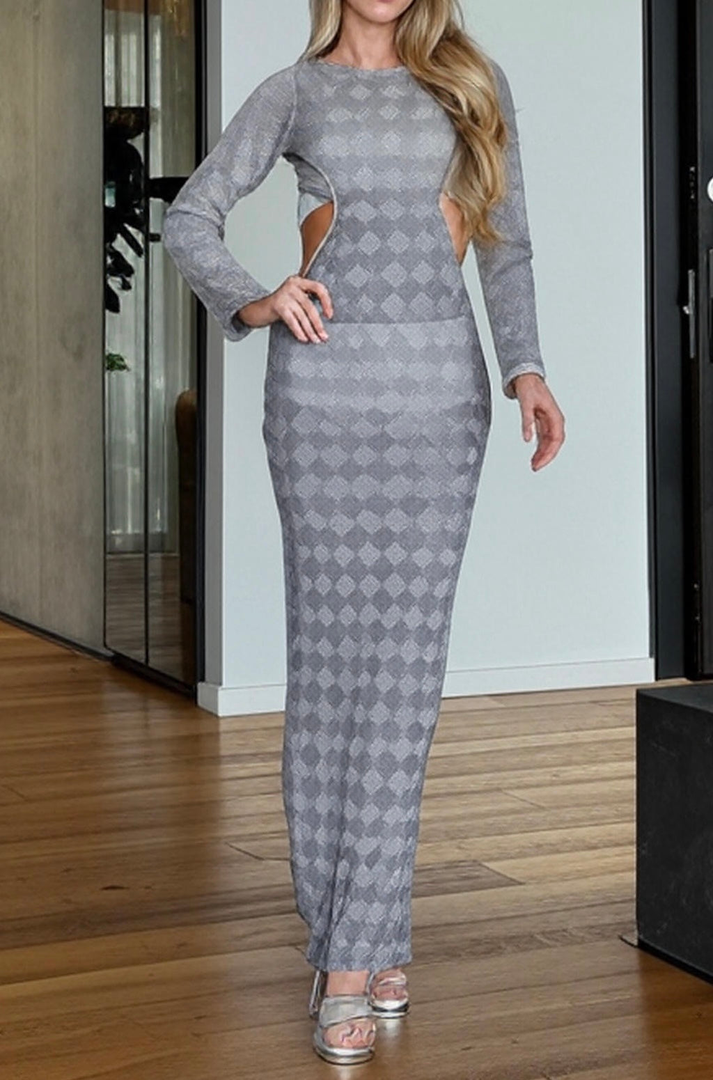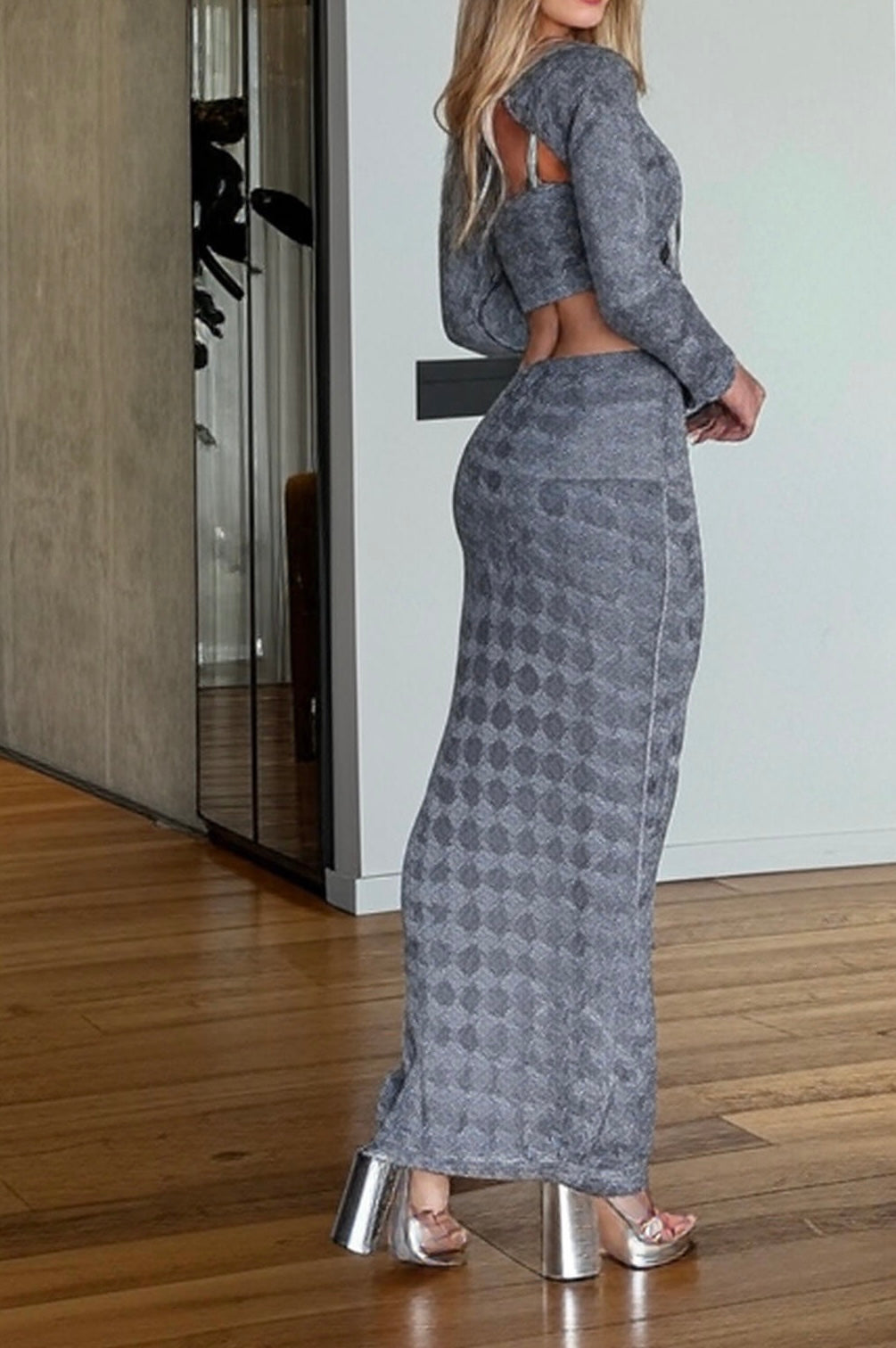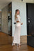 Vestido tejido largo, manga larga, incluye top y panty tipo cachetero.